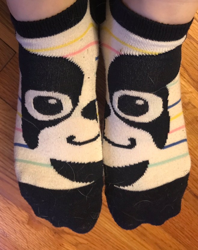 That’s when I kicked off my moccasins and showed her the socks I was wearing. The socks that each had half of a drawing of a Boston Terrier’s face. The socks that, when worn together, created the whole Boston Terrier’s face. Yes, the picture of the socks at the header of this article. Full-circle.