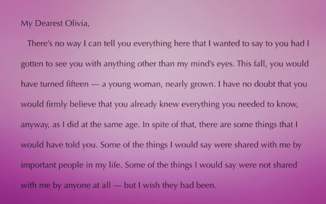 I’m not launching a letter-writing campaign, and I sincerely doubt anything I have to say will be printed or read as often as Paul’s works. However, when thinking about the book that I’m writing detailing different facets of my experiences with infertility, something that’s missing so far are my children — the child I had wanted but wasn’t able to carry, and the ones I haven’t had since. So I decided to take Anne’s suggestion and write a letter to my unborn children. The one who would be fifteen next month, and the two others who haven’t come since.